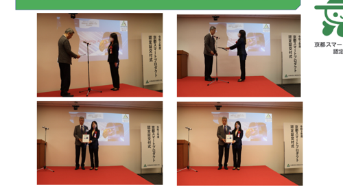 Smart Energy AI was certified as a Kyoto smart product, and the certificate was awarded at the certificate ceremony