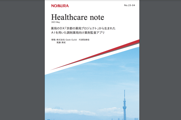 5月29日、野村ヘルスケア・サポート&アドバイザリー株式会社が発行する医療経営情報・介護事業経営情報誌『ヘルスケアノート』のNo.23-04 として、「薬局のDX『京都の薬局プロジェクト』から生まれたAIを用いた調剤薬局向け薬剤監査アプリ」が発行されました。